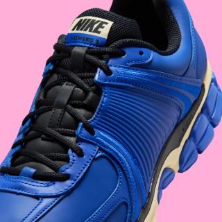 Like the Nike Zoom Vomero 5 “Pony,” the Nike Zoom Vomero 5 “Hyper Royal” trades the model’s usual mesh-heavy build for a full leather upper. Smooth leather panels wrap the silhouette from toe to heel, delivering a cleaner, more structured finish that leans into lifestyle territory. Ribbed midfoot detailing remains intact, preserving the model’s early-2000s design DNA, while stitched overlays replace the typical technical layering seen on GR pairs.