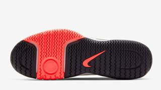 A modified herringbone pattern provides the NikeCourt Tech Challenge 20 excellent traction. The aforementioned Max Air unit offers cushioning in the heel and helps create a smooth heel-to-toe transition. The medial side of the Air unit is hidden — helping to provide durability during slides — and ankle support is augmented by an asymmetrical collar. As in the original Air Tech Challenge II, the classic “Nike Air” logo appears on the heel.