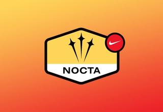 The design is peppered with distinctive NOCTA branding, including a prominently debossed logo on the forefoot, reinforcing the collaborative nature of this release.