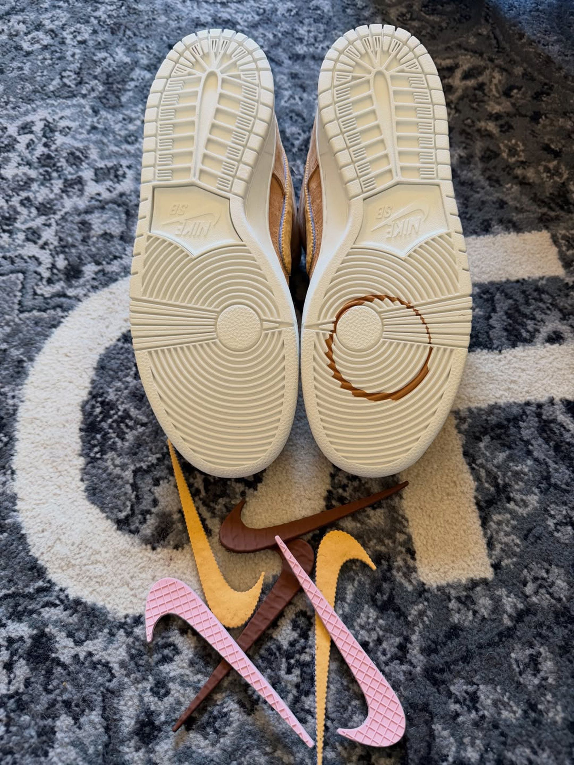 - Interchangeable Swooshes: Wearers can swap between a solid brown "croc-style" swoosh or a pink grid-patterned option.