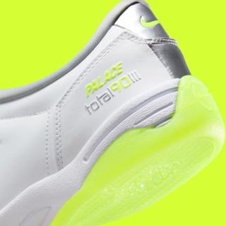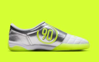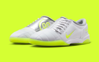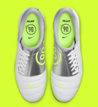 The collection includes track jackets, shorts, and hoodies in neon green and grey tones, accented by co-branded Palace and Nike logos. One of the most eye-catching details is the large “P90” logo, clearly inspired by Nike’s iconic Total 90 football era, seen across jackets, pants, and footwear. The pieces capture a nostalgic yet energetic aesthetic, merging early-2000s football style with Palace’s signature irreverent edge.