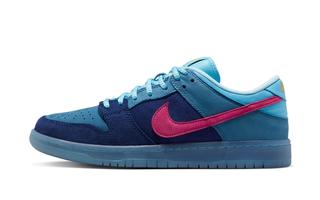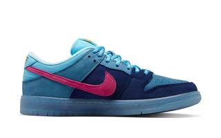 Update 11.21.22 Just days after the very first looks at their high-top release, first looks at the Run The Jewels x Nike SB Dunk Low have landed. It comes constructed in a slew of blue suedes, from dark tones at the midfoot and toe, wot mid blues at the eyestay and quarter, before reaching low-gloss baby blue leathers at the tongue and heel. Juxtaposing the sea of blue is a bright pink Swoosh — also in suede — with ice-blue sole units sitting underfoot to complete the design.Update 11.19.22 Masterchefian has given us a very first look at the Run The Jewels x Nike SB Dunk High, which was revealed today at ComplexCon. The black leather-based pair features a bright fuchsia pony hair upper, with striking gold jewel bling, glossy black geometric Swooshes, and a black and pink sole unit underfoot. See for yourself below, and look for both these and the Lows to release in time for 4/20 2023.Original Post Rap duo Run The Jewels will be celebrating 4/20 with Nike SB in 2023, with the two parties set to release a Nike SB Dunk High and a Nike SB Dunk Low, as per Complex.