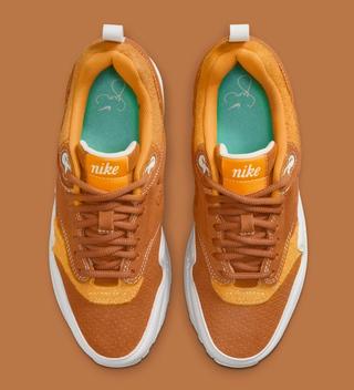 While the entire collection, which includes the Dunk Low Disrupt 2 and Air Huarache, has remained loyal to a primary palette of white, golden-yellow, and teal, the Air Max 1 stands out not just for its unique color proportions but also for its upscale craftsmanship.