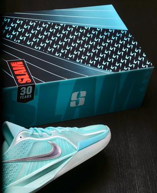 This special edition shoe dazzles in a seafoam colorway, a nod to both the magazine's vibrant legacy and Ionescu’s dynamic influence. The design is replete with thoughtful details: SLAM’s logo and the 30th-anniversary emblem embellish the heels, while the insoles carry the celebratory banner. The reflective Swoosh logos on the sneakers enhance visibility and symbolize self-recognition and aspiration, mirroring the potential seen in Ionescu's path.