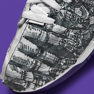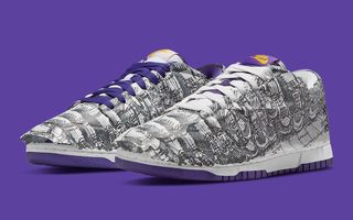 Like the just-previewed Air Force 1 Low “Keep ’em Fresh”, this Dunk will arrive in a protective tissue wrap. This time, along with the graphic insoles, honors the original college colors campaign from the Dunk’s day dot. Beneath, we find two mismatched colorways, each inverted from the other. They appear to channel 1999’s CO.JP “City Attack” Pack, a two-piece High release that served purple and white options with popping yellow-gold at the tongue. Instead of the Highs, we see a Low, with each respective shoe honoring the classic release. Different from the 1999 pack, the “Reverse” colorway gets the full inverted treatment, including flipped Swooshes and mirrored tongue and rear branding. Construction on the pairs is different, too, with migration away from staple smooth leather in favor of a soft tumbled leather build and overlays of ostrich-textured leather.