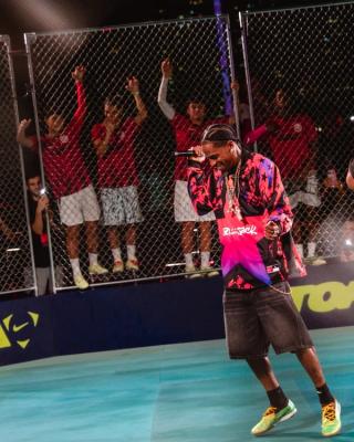 Scott also took the TOMA football event as an opportunity to wear the all-new "Hollywood Keepers" Sportswear Goalkeeper Jersey, a long-sleeve shirt inspired by the '90s and 2000s. Both the new top and unreleased indoor shoes add two tallies to the Cactus Jack-frontman's ongoing celebration of "the beautiful game."