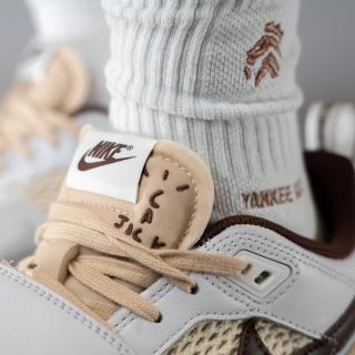 The Travis Scott x Nike Zoom Field Jaxx "Light Chocolate" retains the luxurious suede and leather construction seen in earlier versions but introduces a predominantly white color scheme that exudes a clean, minimalist aesthetic. Light chocolate accents on the Swoosh and various branding elements, such as the hidden CACTUS logo beneath the lockdown strap mesh.