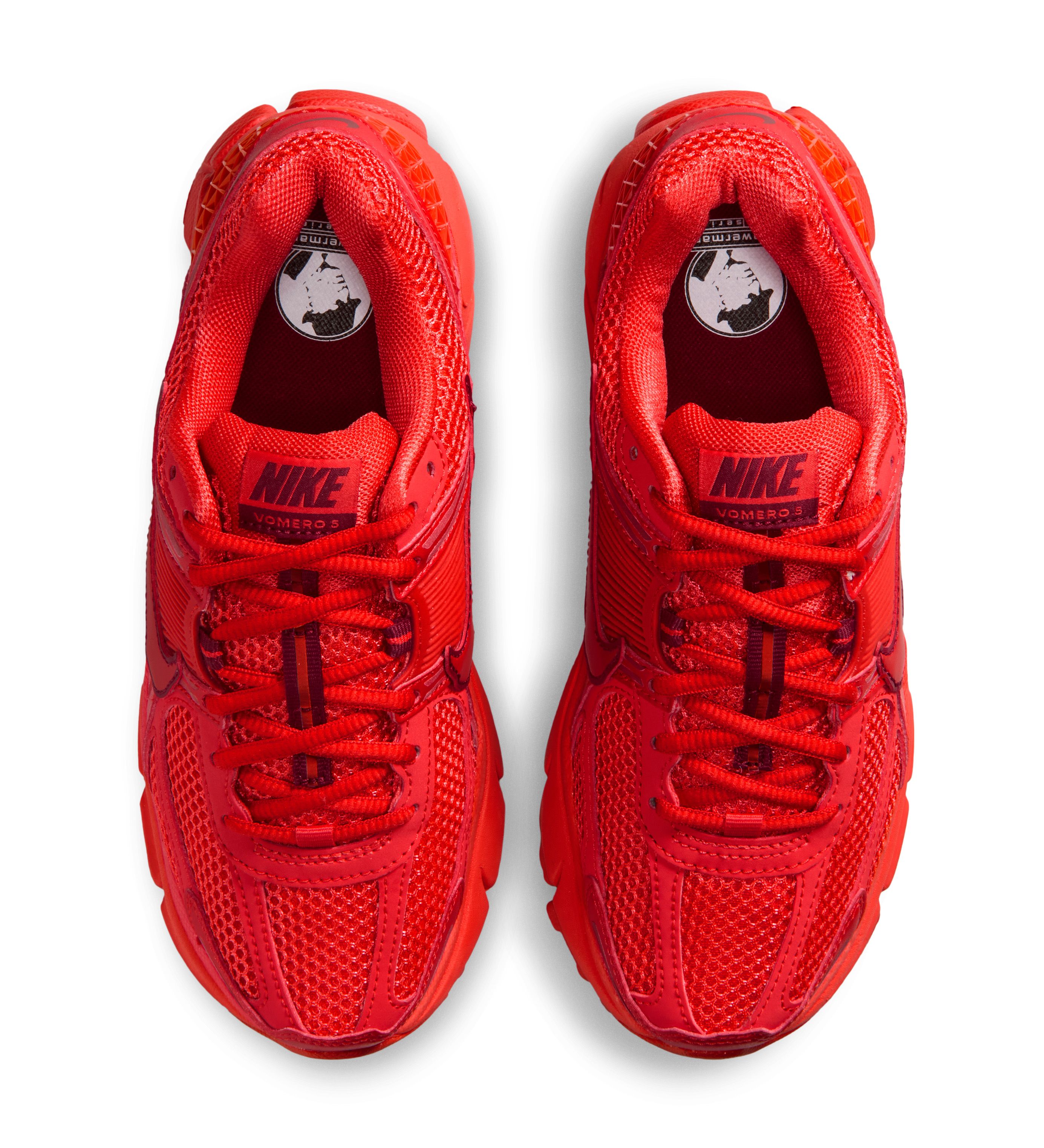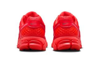 Enjoy official photos of the red-colored Vomero 5. Pairs are expected to land via Nike.com by June.