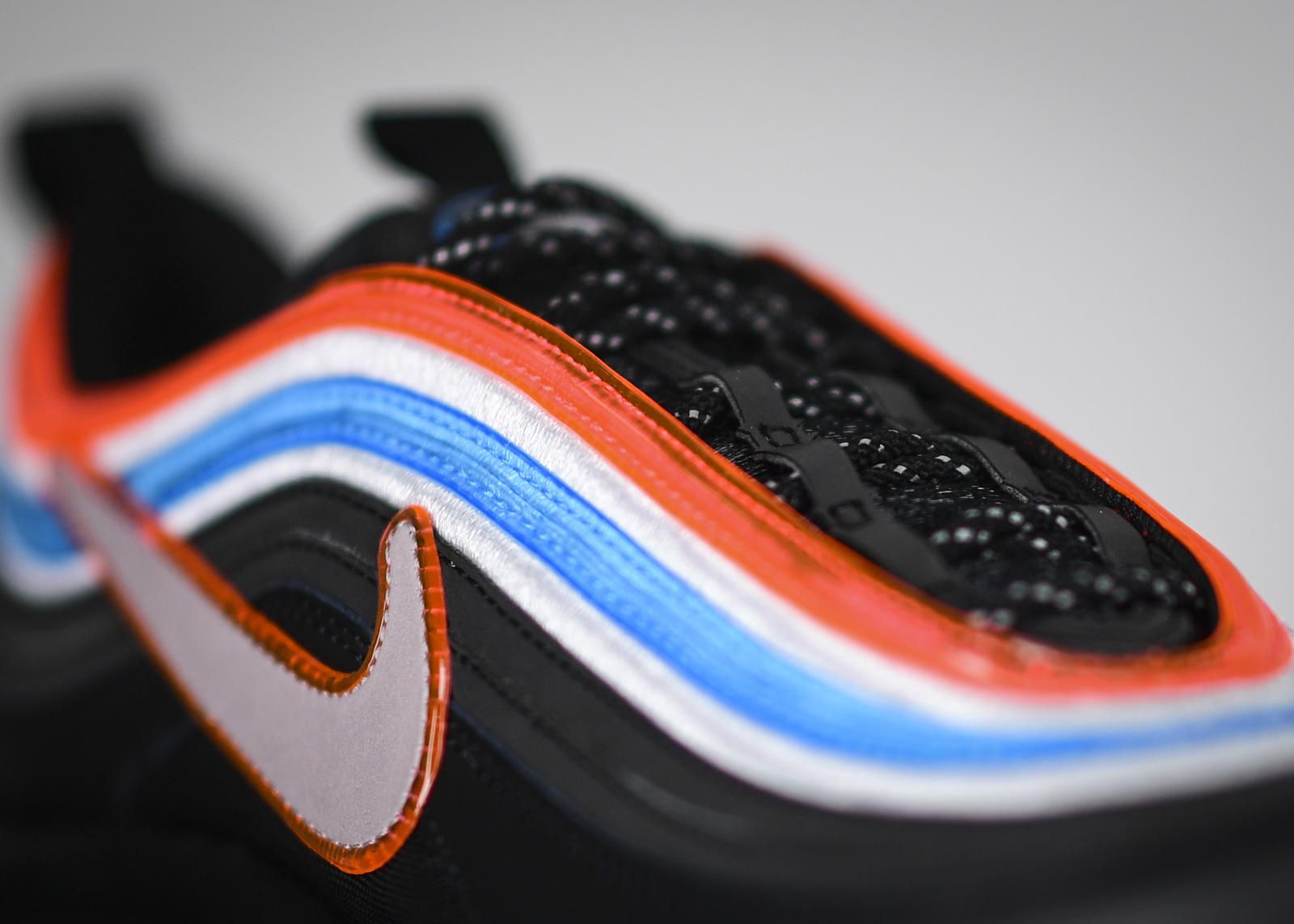 Shin’s Nike Air Max 97 Neon Seoul is inspired by the city’s neon signs, complete with a matte black body, vibrant colors and contours inspired by the Taaeguk symbol on Seoul’s flag.