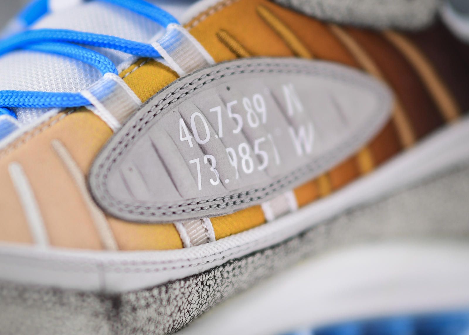 Serrano’s design, inspired by the diversity of New York City’s population, adorns an upper that mimics different skin tone shades. The diversity theme continues on the insoles, which are covered in national flags from around the globe. Grey cracked leather wrapping the mudguard is a nod to NYC’s urban environment, while minimal mint green accents represent the Statue of Liberty.