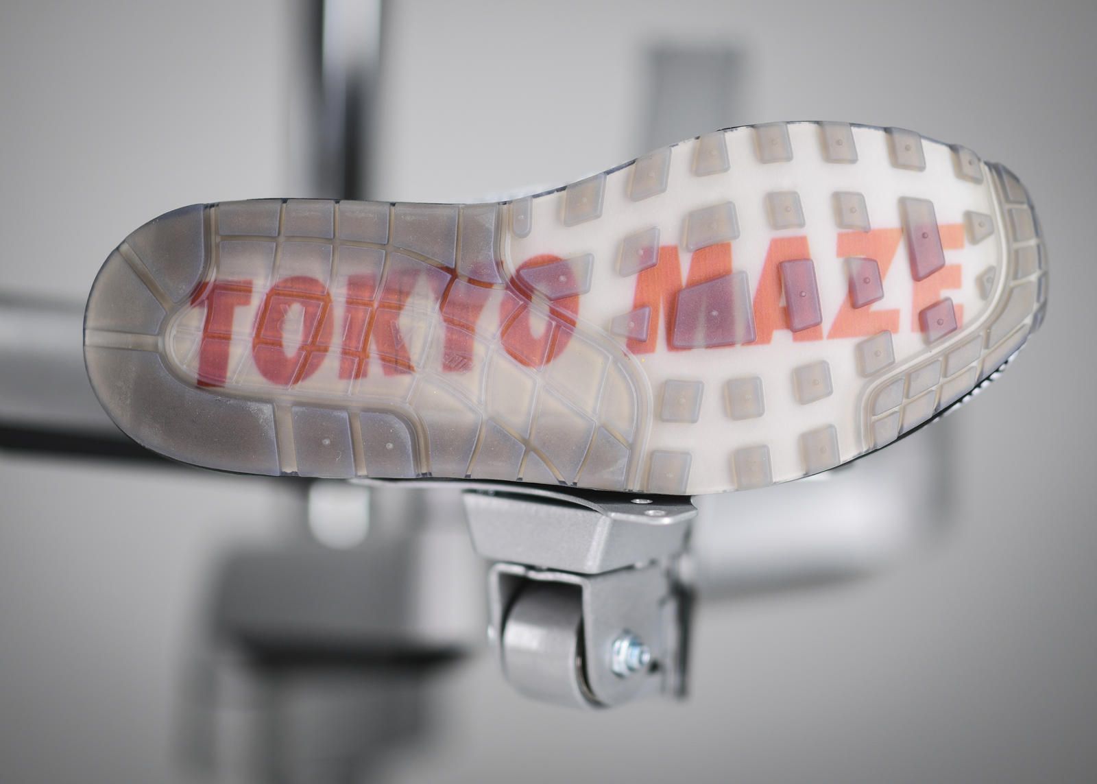 Takuman’s Nike Air Max 1 Tokyo Maze honors the dizzying urban labyrinth of colorful tube lines that shoot beneath Tokyo. Embossed leather represents the city’s concrete surface, while the red bubble pays homage to the iconic Tokyo Tower.