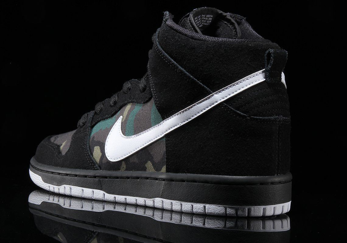For this pair, though, the SB returns to a mix of basic black and white, black hitting the suede overlays and midsole, white hitting the Swoosh and outsole. This all overlays the most recognizable camo print in history — Woodland.