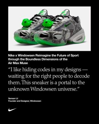 Sensen Lii's Antwerp-founded WINDOWSEN might not have the mainstream name recognition that other Nike, Inc. collaborators do, but the six-year-old label is poised to become at least recognizable by the common sportswear consumer. It's doing so by reimagining the Nike Air Max Muse in one of the wildest makeovers of the year.