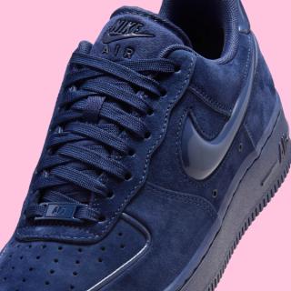 Unlike traditional leather-based Air Force 1 releases, this “Midnight Navy” edition leans heavily into texture. Soft suede dominates the upper, replacing the usual smooth leather panels across the toe, quarter, and heel. The deep navy tone keeps the look grounded and versatile, while subtle shifts in material finish prevent the monochromatic palette from feeling flat.