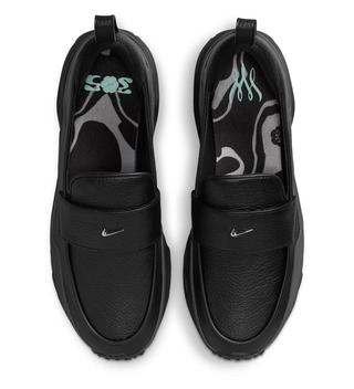 Unlike its counterpart, the Air Max-cushioned design features a traditional heel instead of a mule-friendly setup. An Air Max 1-reminiscent mudguard appears across the upper's lower-half, while tumbled leather construction appears elsewhere, following design principles established by traditional loafers. A "Metallic Silver" swoosh lands on the mid-foot strap on the sneaker-loafer's inaugural "Black" look. A pull tab at the heel is partly-attached to a padded component atop the inner lining. Underfoot, the sole unit is reminiscent of the Air Max Sunder, further connecting the modern proposal to the Swoosh's back-catalog.