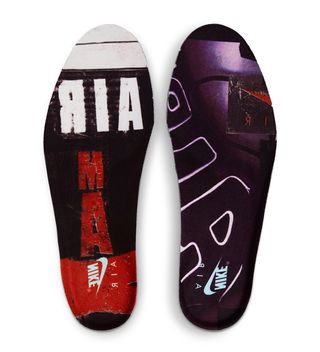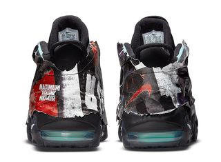 Featuring a rock-n-roll mix of black, black, and eh, black, the pair works in hits of aqua and red for contrast. The former is used more liberally, highlighting the signature lettering, across the tongue TPU tags, and coloring the Air supports, while red reaches only the toe, rear and underfoot Swooshes. Punk-rock patent leather AIR lettering adds some frontman flair, while a more subtle semi-translucent finish is applied to the outsole. Graphic insoles channel the exterior wrap in featuring garage band-era aesthetics to complete the design.