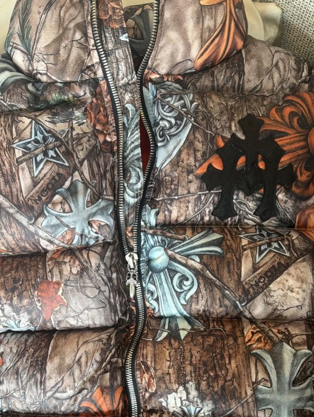 Construction appears consistent with Chrome Hearts’ in-house standards, with heavyweight quilting, premium zippers, and refined stitching throughout. NOCTA’s influence comes through in the functional silhouette and wearability, while Chrome Hearts elevates the execution through texture, pattern, and exclusivity. The result is a collection that sits firmly between technical outerwear and luxury streetwear, rather than leaning fully into either category.