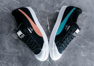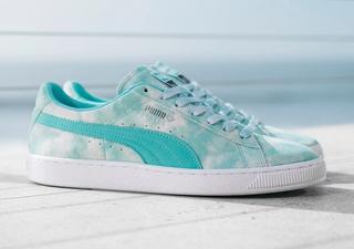 In the new PUMA x Diamond Supply Co. collection, a shared passion for sport is brought to life through simplicity of design and attention to detail. Founded in the late ‘90s by Nicholas Tershay, Diamond Supply Co. is widely recognized today as one of the biggest, most authentic skate and streetwear brands in the country — if not the world. In their next-up collaboration with PUMA, Diamond Supply Co. brings their unique aesthetic and skateboarding credibility to the PUMA streetwear classic Cali-O, Suede and Clyde – fusing past and future with vintage fabrics, standout color blocking, and those signature Diamond Supply Co. colors. The options will be touching down on May 25th, the Suede in the signature Tiffany Blue, the Cali-0 in a crisp White, and the Clyde in Black with mismatched detail. All come complete with co-branded tongue tabs and in-cut Diamond heel logos. The pairs will also be accompanied by Tiffany-colored Leadcat slides.