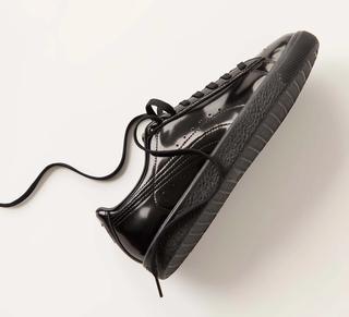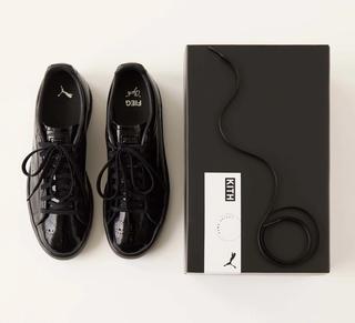 Unveiled via Instagram, the pair takes on an aesthetic inspired by wingtip oxford dress shoes. A glossy patent leather appears across the entirety of the upper, with decorative perforations landing on the toe box and along the profiles. Suede construction is abandoned in favor of the shimmering material as to create a stronger through-line to the source material and the New York Knicks legend's renowned sense of style. Sole units don't opt for a low heel, but their pitch-dark tone complements the elevated upper well. Frazier's jersey number appears on the heel. Co-branding appears on the left shoe's footbed, as well as both labels on the top-of-the-tongue. Shoe boxes also denote the collaboration.