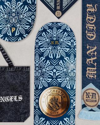 Francisco Reyes Jr. and Paul Rodriquez Jr. are the Mexican-Americans behind both projects, with the latter being a longtime Nike SB athlete. Reyes, also known as Never Made, was in charge of the Man City of Angels collaboration's art direction, reimagining everything from a skate deck to a football support's scarf through his signature style. Manchester City's iconic blue hue lands across numerous items, with gold elements joining the mix for an elegant touch. Branding from all three collaborators appears throughout the collection, which marks the PUMA-backed Premier League club's reach outside of football.