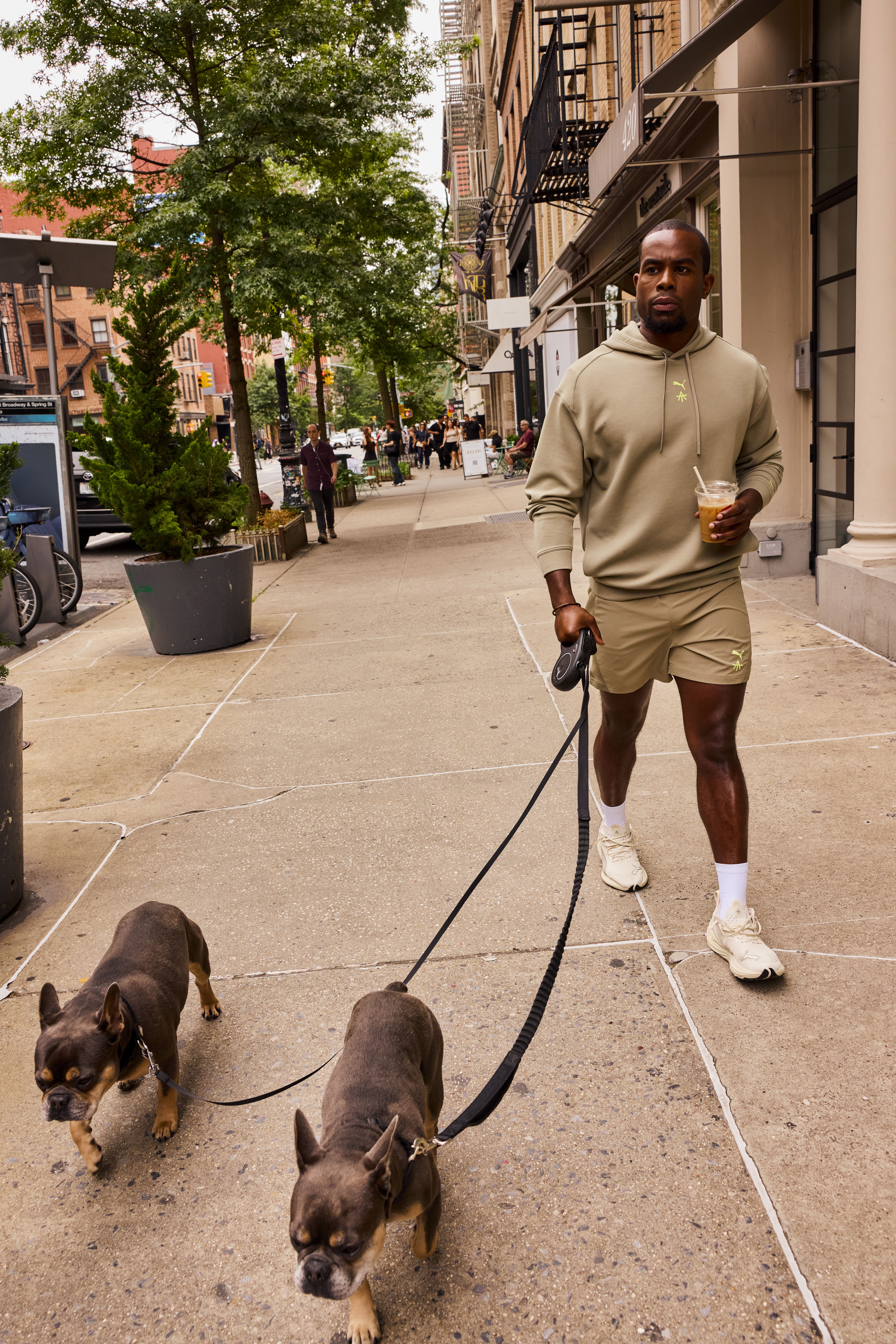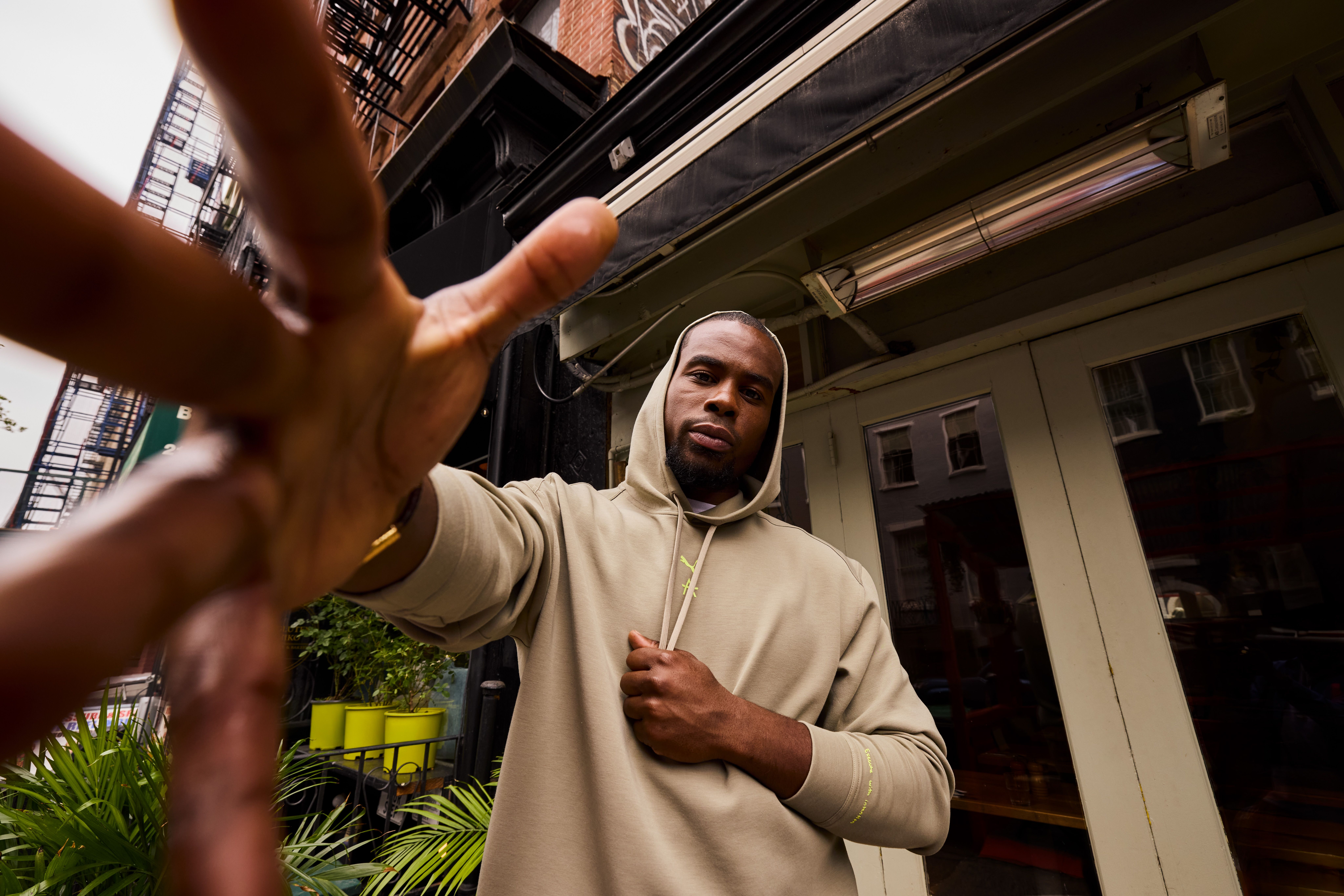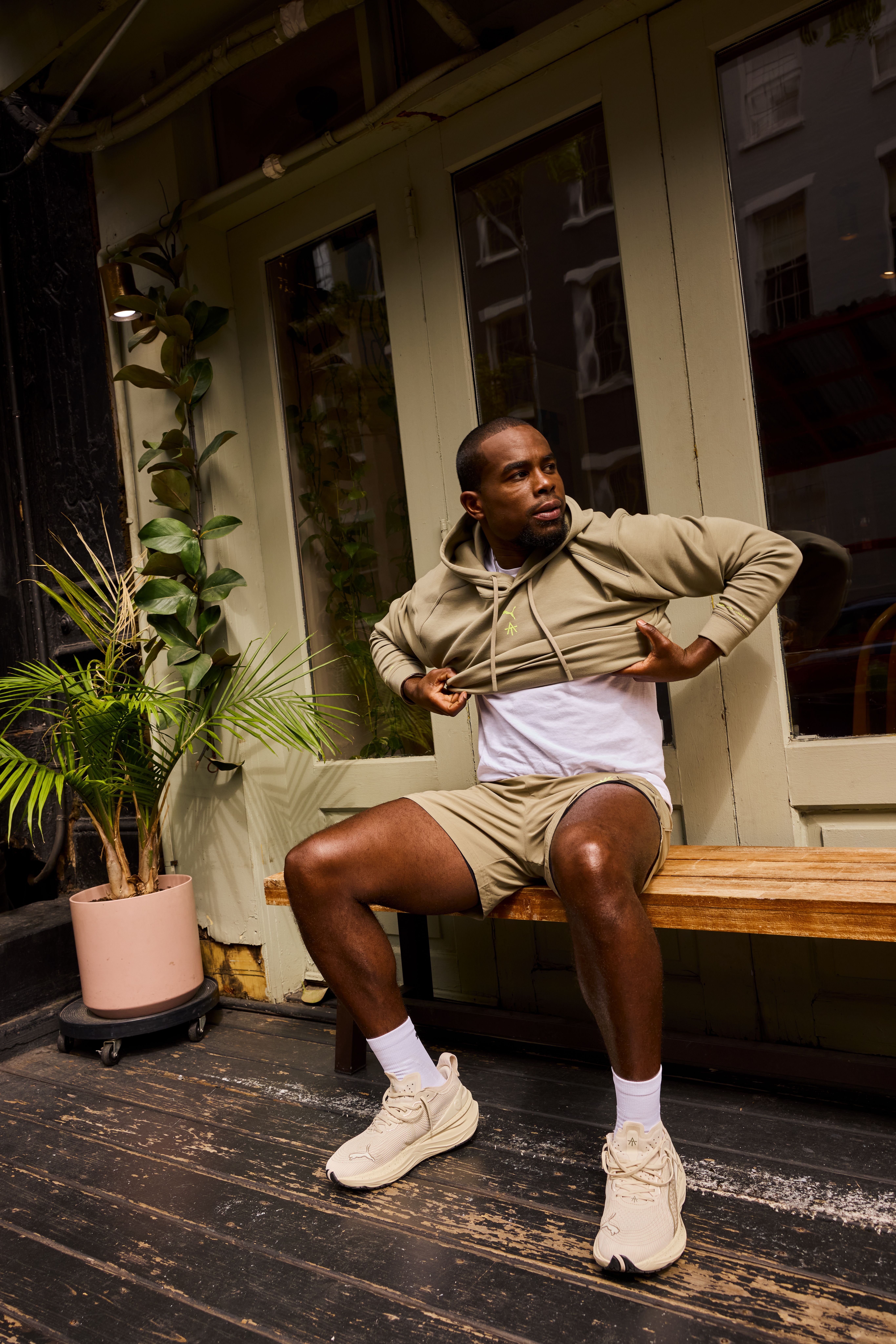 Each item in the Effortlessly Cool lineup comes in neutral shades like Velvet Moss, PUMA Black, and Alpine Snow, accented with co-branded detailing that nods to Toussaint’s motivational energy and disciplined approach.