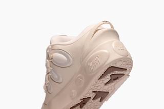 The LaFrancé Moment offers a subtle yet stylish look with its cream and brown palette, enhancing the sneaker's exaggerated, chunky silhouette. This colorway not only speaks to the ongoing trend of earth tones in fashion but also aligns seamlessly with summer’s laid-back vibe. Its design features iconic graphics and an overall composition that leans heavily into the extreme, standout aesthetics of the early 2000s, making it a must-have for enthusiasts of both retro and contemporary fashion.