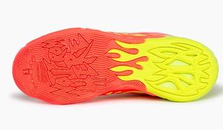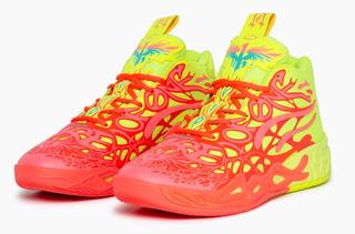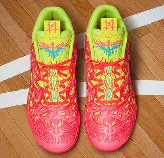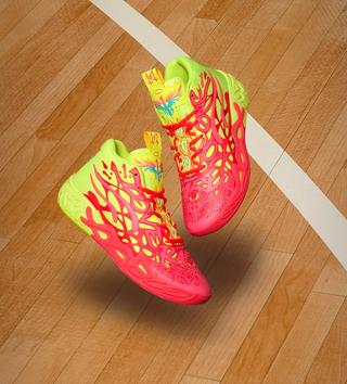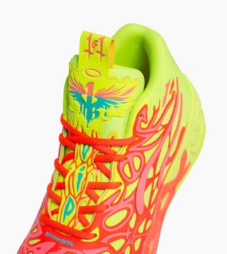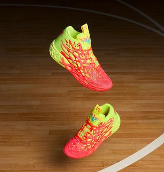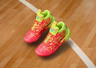 The MB.04 "1Love" sports an acidic color palette that captures the vibrant and bold essence of LaMelo's personal flair and his passionate approach to basketball. Designed with performance and style in mind, the shoe features a double-layered mesh upper for enhanced comfort and breathability, supported by TPU in the forefoot for increased stability. The responsiveness and cushioning are maximized by the use of compression-molded EVA foam, ensuring the shoe remains lightweight without sacrificing performance.