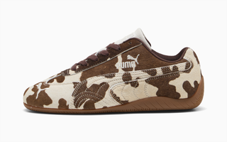 Recently, the trendy Speedcat OG has surfaced in an all-new cow-inspired print. The brown-and-cream-colored makeover has emerged alongside a zebra-inspired version of the PUMA Arizona, a low-profile training shoe from the 1970s. Both offerings join a growing list of animal print footwear across the industry.