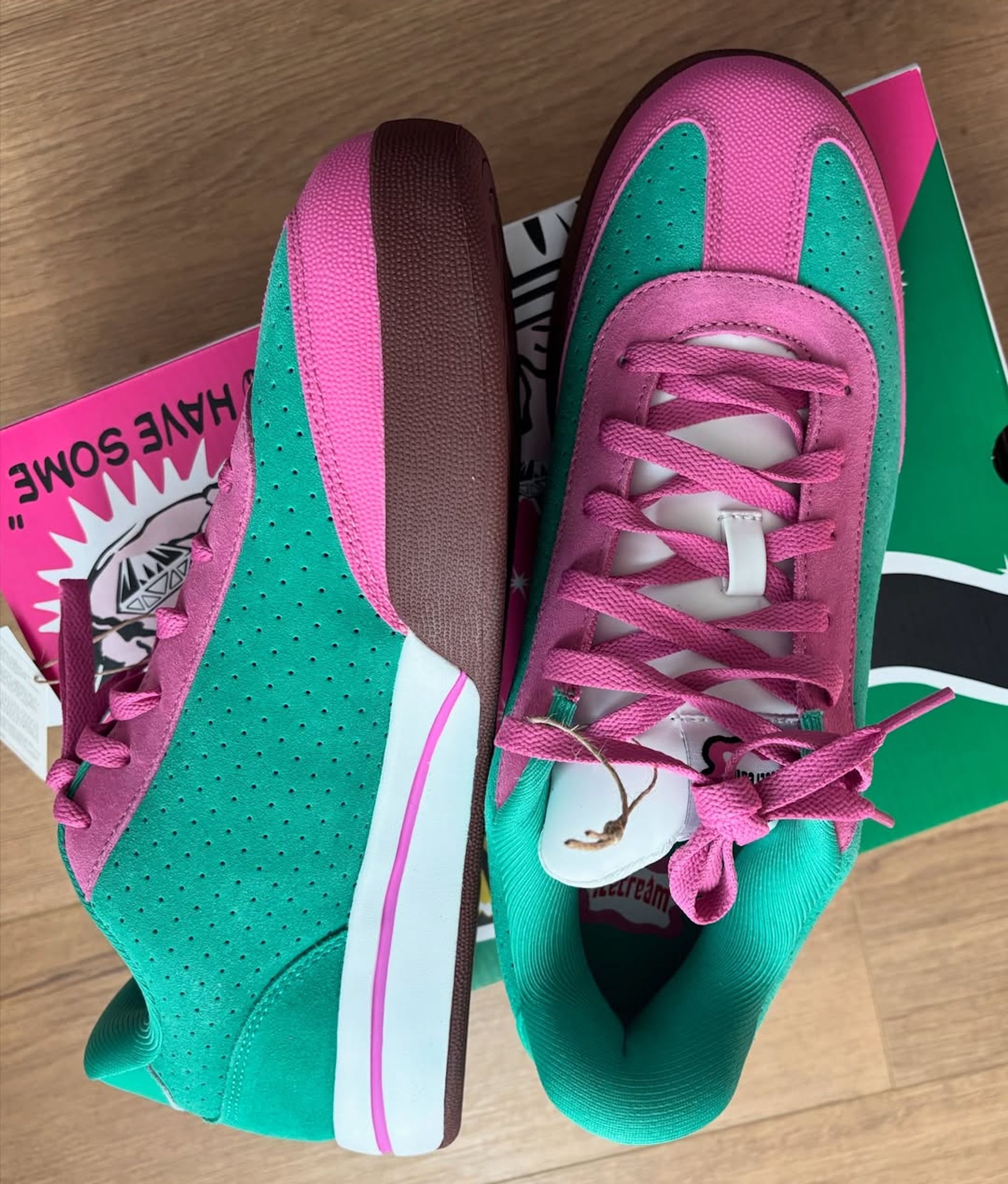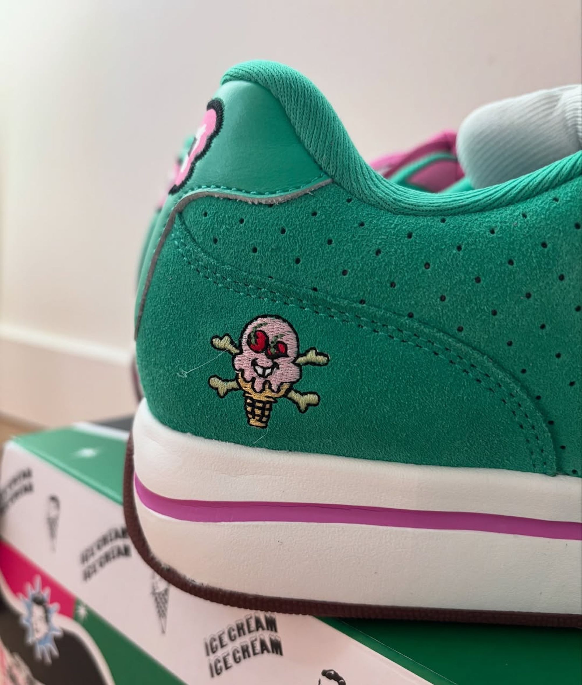 Gorecki recently took to Instagram to share photos of the Board Flip in its debut "Watermelon" (originally officially named "Juicy Pink") presentation. A vibrant green-and-pink color palette animates a mix of materials across the chunky retro silhouette. The pair Gorecki received arrives with ICE CREAM's Skull logo on the lateral heel; the Billionaire Boys Club (BBC) kin lends its main logo to the tongue label, footbed, and Achilles' heel. Shoe boxes also harken back to the mid-2000s, recreating an ice cream carton.