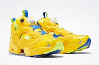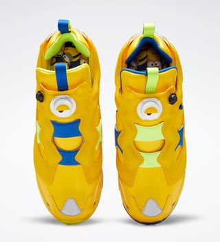 Both pairs arrive in a dazzling mix “Primal Yellow” and “Humble Blue” to mimic the Minions get-up, but also arrive with accents in volt and metallic silver throughout. The Instapump opts for mismatched accentuations between the feet, and tacks on eye motifs on the famed Pump tech to complete the tie-in. The Club C arrives a little more straightforward, with blue tongue popping out from beneath its all-yellow upper, and capped off with collaged liners and insoles.
