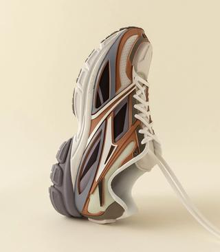 Despite the crowded market of mesh runners, the Premier Road Modern stands out thanks to distinctive design features such as a pronounced toe-cap and a futuristic heel stamp. These elements, alongside the specially designed grid-patterned insoles provided by Packer, emphasize the shoe's advanced aesthetic and technological appeal.