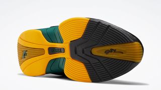 Reebok’s Answer V has recently enjoyed nostalgia-driven vibrancy thanks to Pharrell’s BBC Ice Cream. Though toned down, the sneaker’s upcoming “Black/Dark Green/Fierce Gold” arrangement unquestionably nods to the past, too. A faithful reproduction of pairs worn by Allen Iverson in 2001, the Answer V features a black tumbled leather upper accented with signature details. Pearlized synthetic overlays cover the tongue in a rich green, which also lines the collar and DMX cushioning enclosure. Iverson’s “I3” logo keeps its original white/black/red color scheme, but switches up on the tongue; “The Answer’s” emblem is printed in silver atop regal yellow lining. Elsewhere, upper eye stays, heel padding and lockdown straps, as well most outsole traction, follow suit in “Fierce Gold.” Altogether, this basketball retro nods to Iverson’s time playing for the Bethel High School Bears in Hampton, Virginia. Take a closer look at this Answer V here below and find them at Reebok.com for $140 USD come February 28th.
