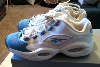 Already released overseas, this duo arrives inspired by two original Reebok Question Lows from 1999. Back then, the light blue and red pairs were popped with suede toes and heel panels (pictured below) but see a patent leather retooling (and slight color variations) for 2020’s reissue. Like the upcoming Oatmeal release, these too arrive with bluer outsoles to combat the dreaded oxidization that was so prevalent on the originals: