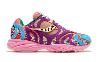The retro-futuristic sneaker boasts an eclectic mix of colors and patterns. Pink adorns the "Grid"-branded midsoles, while a semi-translucent finish graces the outsole. Purple suede, zebra prints, and floral patterns share the spotlight on the upper, creating a dynamic yet harmonious appearance. Co-branding is featured prominently throughout the shoe, emphasizing the collaborative nature of the project. Jae Tips commented on his partnership with Saucony, stating that it's not always about the money, but rather the "cool" factor.