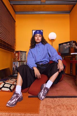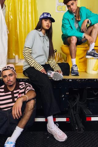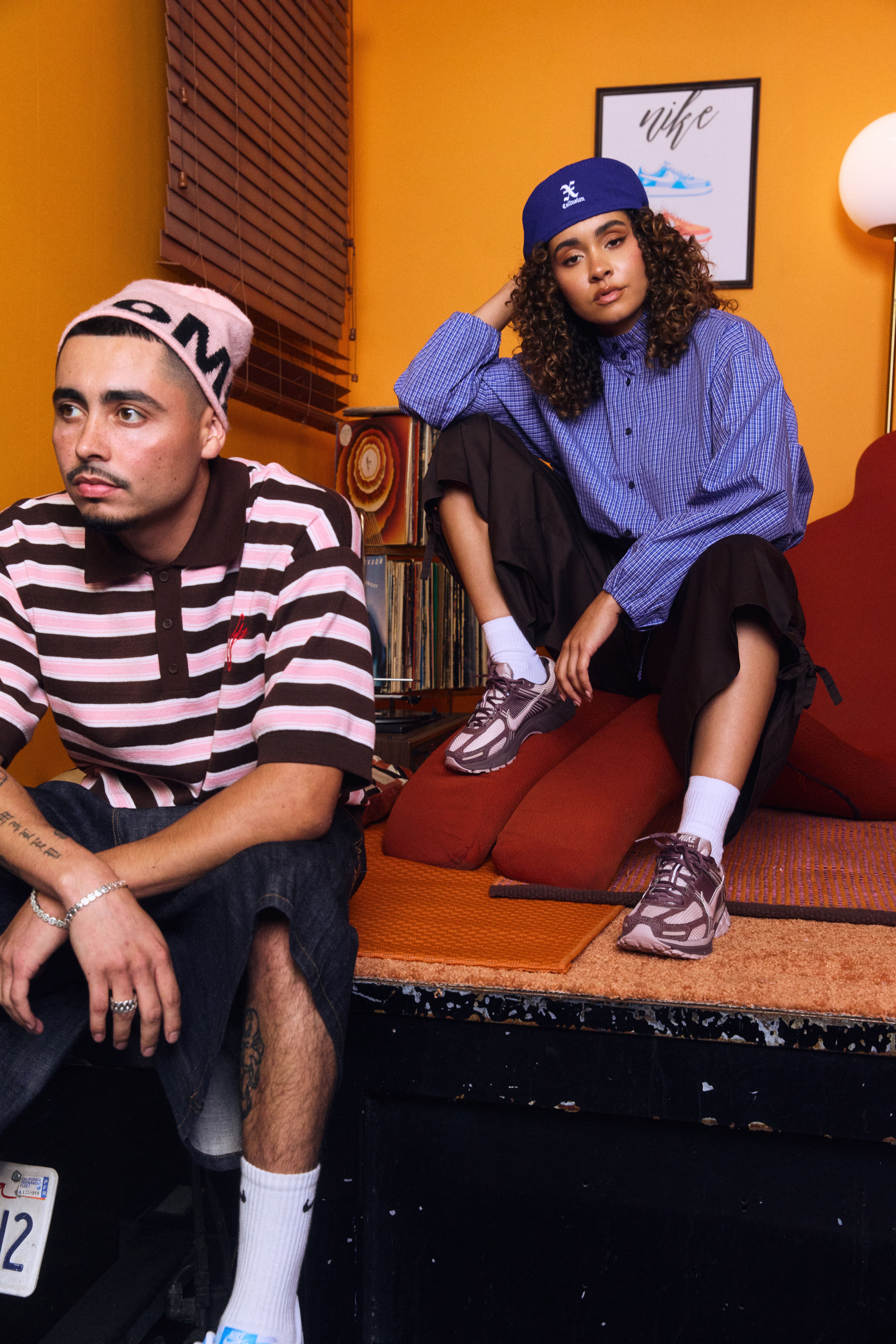 Developed entirely in-house, the campaign blends sport and lifestyle through a mix of maximalist and minimalist looks. Styling pulls from oversized tailoring, capri leggings, and layered accessories, alongside references to ’80s hip-hop and ’90s fashion. The result reflects how younger consumers approach footwear today—less about function, more about expression.