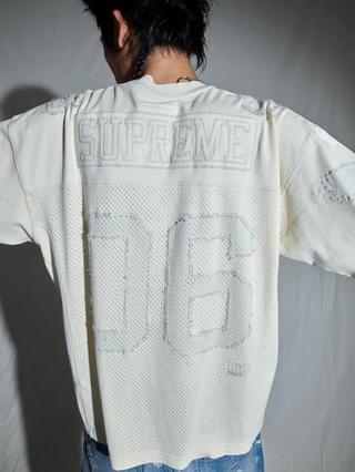 Known for its unconventional silhouettes and subtle deconstruction, MM6 Maison Margiela introduces altered proportions and distressed finishes across a wide range of pieces. The result is a collection that blends familiar Supreme staples with the offbeat detailing Margiela has long been known for.