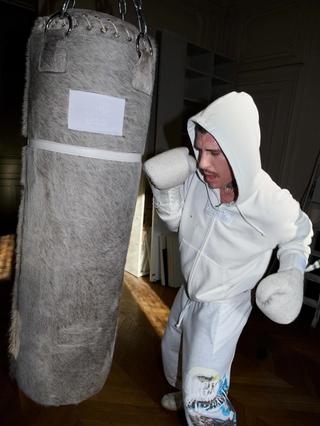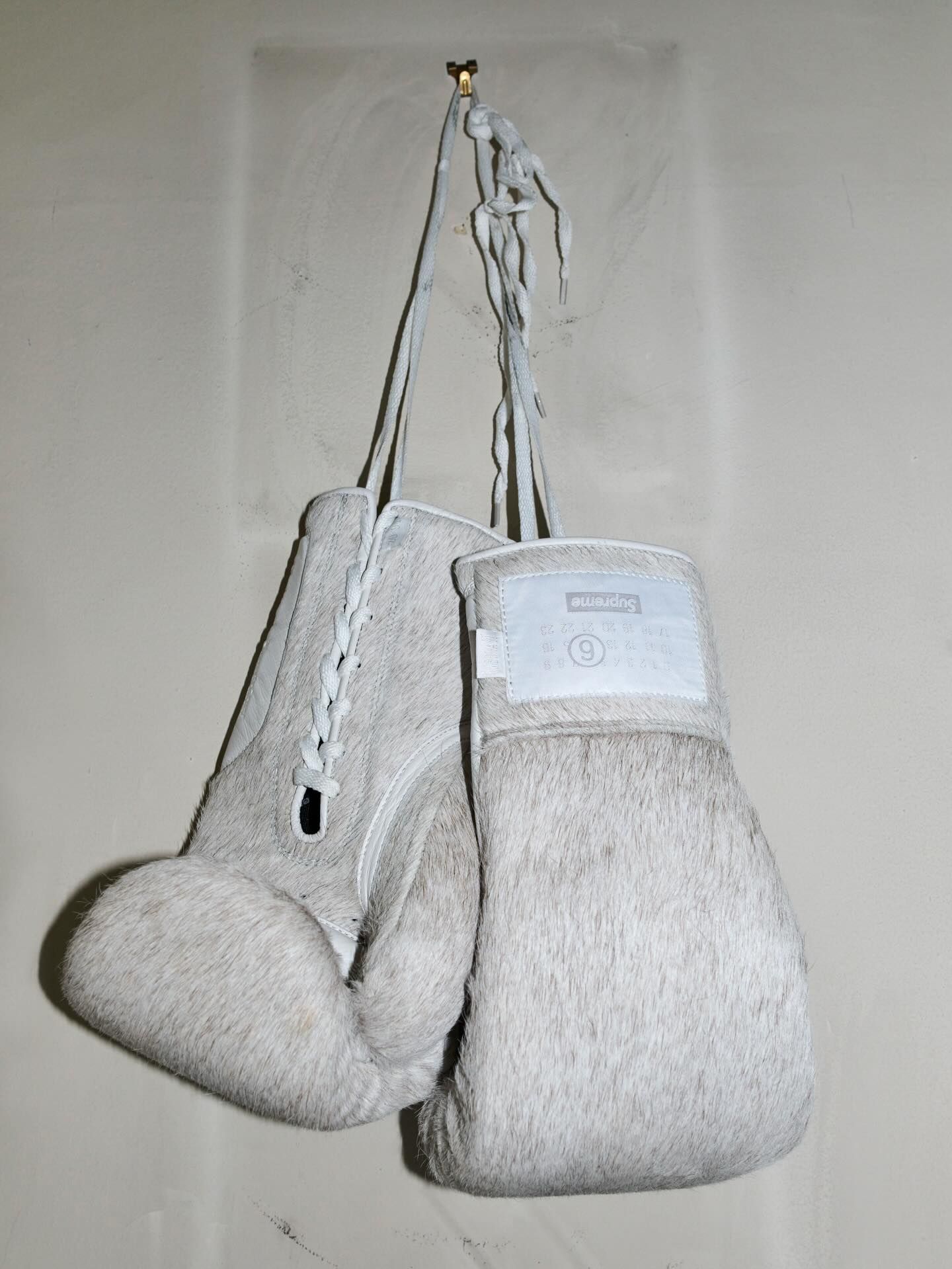 The collaboration also ventures into unexpected territory through boxing-themed accessories produced with Everlast®. The collection includes a faux-fur punching bag and a set of Everlast® 1910 Pro Training Gloves, continuing Supreme’s long-running tradition of incorporating sporting goods into seasonal collaborations.