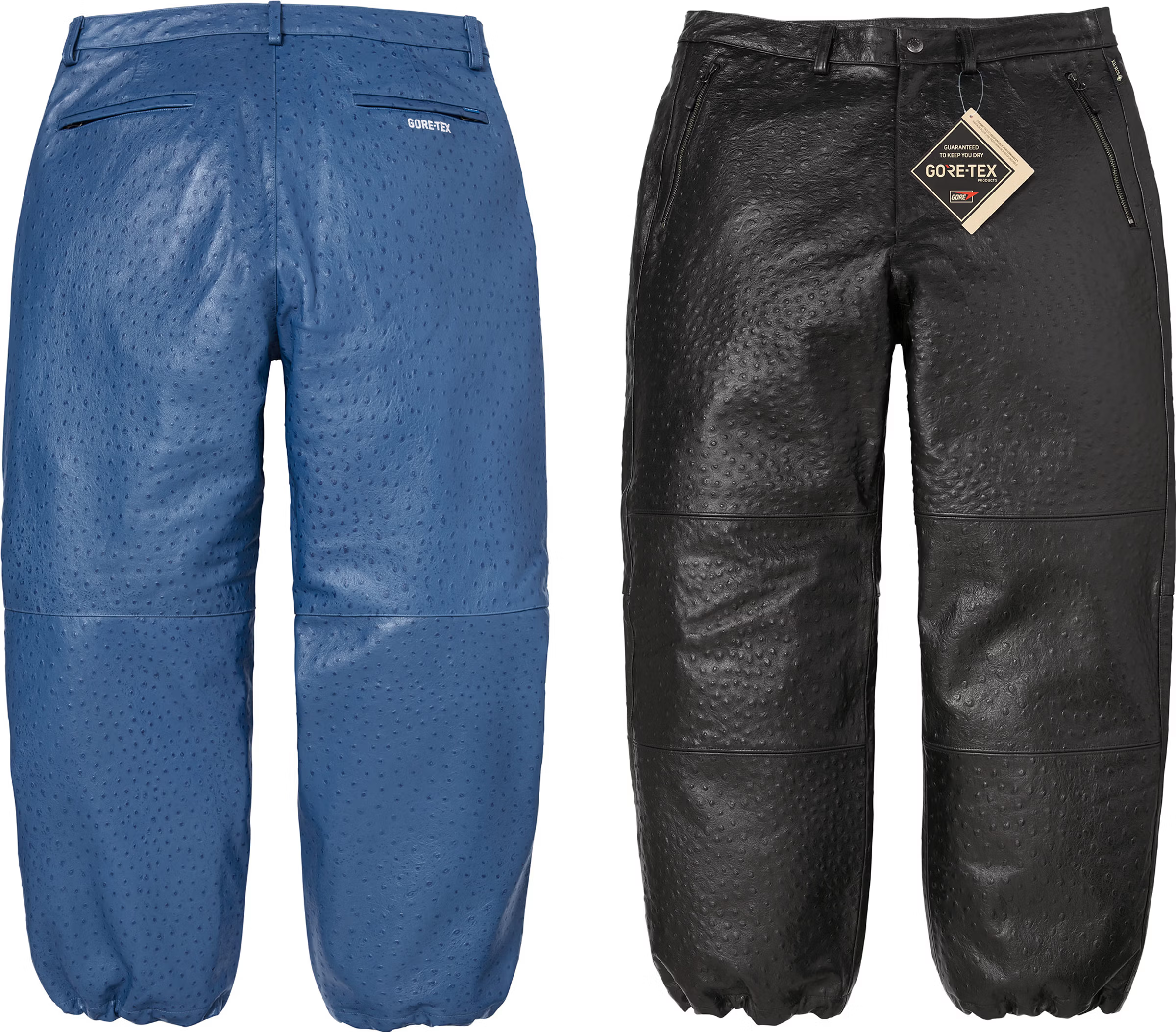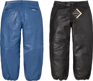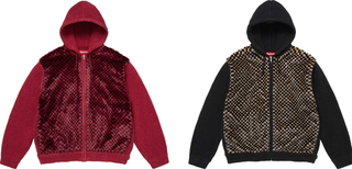 Elsewhere, the partial list includes the GORE-TEX Ostrich Embossed Leather Jacket, matched with coordinating pants and a camp cap. The set pairs weather-resistant construction with textured detailing, offering a more elevated option within the range. The Velour Mesh Track Jacket also appears, providing a lighter, sport-inspired layer, while the Checkerboard Faux Fur Zip-Up Hooded Sweater adds a heavier, patterned alternative.