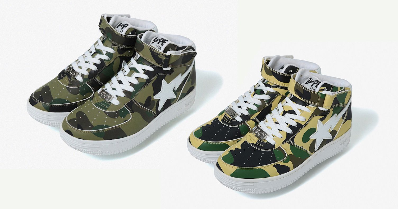 But if you do find yourself on the other side of my fence thirsty for a pair, the Bape Bapesta Mid “1st Camo” colorways release on July 14th at select Bape stores and on Bape.com for $305.