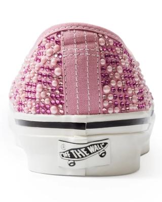 Previous work by Gollin for the original action sports brand shook up corners of social media thanks to its luxurious ensemble, which arrived with a $750 price tag. Each pair of the creative's reworked Authentic features hand-placed pearls and crystals, which the Italian designer has shared takes up to eight hours to complete.