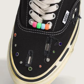 Recently, Los Angeles-based consignment shop Justin Reed took to Instagram to share a never-before-seen pair of the Vans Era 95 by Satoshi Nakamoto. Akin to the Old Skool 36 pairs that appeared throughout summer, the new style sees a distressed, busy aesthetic. The "Lucky Charms" ensemble features a predominantly black upper that sets the stage for a series of jewels and fraying. Inner lining sees an aged, somewhat deconstructed look, which also takes on the foxing and sole unit underfoot.