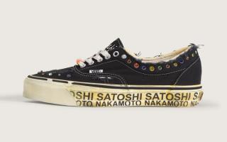 Large "Satoshi Nakamoto" text is printed onto the midsoles, rounding out the collaboration between two West Coast brands.