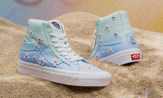 The three-piece capsule (there’s likely more to be revealed, too!) arrives across two silhouettes that visit the depths of Bikini Bottom. Both Sandy and SpongeBob get their own respective release — Bobby boy on the Old Skool and Sandy on the Sk8-Hi. The former sees an oversized chenille SpongeBob sitting at the Hawaiin-print midfoot panel. Toes, heels, and eyestays arrive in classic black suede, with typical finishes also applied elsewhere. Sandy’s Sk8-Hi arrives with a green-to-blue gradient applied to the upper and comes clad with her signature helmet flowers throughout. The third option, a patchwork of signature SpongeBob prints and wallpapers, comes complete with another chenille SpongeBob — this time at the heel.