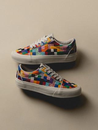 Celebrating Pride, the Vans Old Skool LX "Love Wins" features a vibrant and eye-catching exterior, with only the sole, tongue, and laces remaining untouched. The upper is adorned with a medley of bold colors, meticulously arranged in a checkerboard pattern reminiscent of a handcrafted quilt. The varying shapes and sizes of the squares, along with threads extending beyond their boundaries, contribute to the shoe's intentionally imperfect and artisanal appearance.
