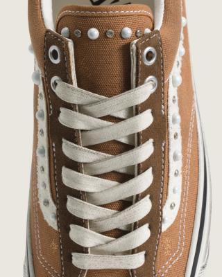 Across the Vans Pearlized Pack, canvas uppers are decorated with a mixture of pearl-like beads and metallic studs arranged across the toe boxes, quarters, and heel panels. The embellishments give the sneakers a hand-customized feel while maintaining the familiar construction that has defined Vans’ skate lineage for decades.