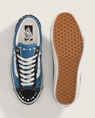 Alongside the Slip-On models, the Old Skool 36 joins the pack in two standout executions. One features earthy brown suede and canvas panels with pearl-studded Sidestripes, while another mixes teal canvas with black overlays and the same jewelry-inspired treatment. Both pairs maintain the iconic Sidestripe™ first introduced in 1977, paired with intentionally distressed foxing that gives the sneakers a worn-in, vintage aesthetic straight out of the box.